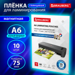 Пленки-заготовки для ламинирования, МАГНИТ ДЛЯ ФОТО, 111х154 мм, А6, КОМПЛЕКТ 10 шт., 75 мкм, BRAUBERG, 533121