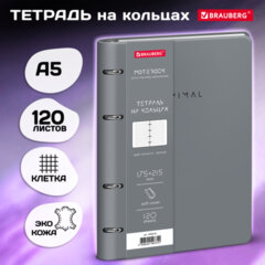 Тетрадь на кольцах А5, 175х215 мм, 120 л., под кожу, BRAUBERG VISTA, «Minimal», серый, 405216