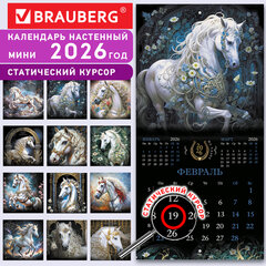 Календарь настенный перекидной 2026 г., BRAUBERG, 12 листов, 21,4х21,4 см, МИНИ, «Волшебная лошадь», 116940
