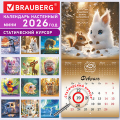 Календарь настенный перекидной 2026 г., BRAUBERG, 12 листов, 21,4х21,4 см, МИНИ, «Magic animals», 116943