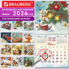 Календарь настенный перекидной 2026 г., BRAUBERG, 12 листов, 21,4х21,4 см, МИНИ, «Советские открытки», 116946