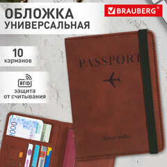 Обложка для паспорта и документов с защитой от считывания, 9 карманов, резинка, экокожа, коричневая, BRAUBERG, 238751
