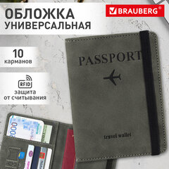Обложка для паспорта и документов с защитой от считывания, 9 карманов, резинка, экокожа, графитовая, BRAUBERG, 238753