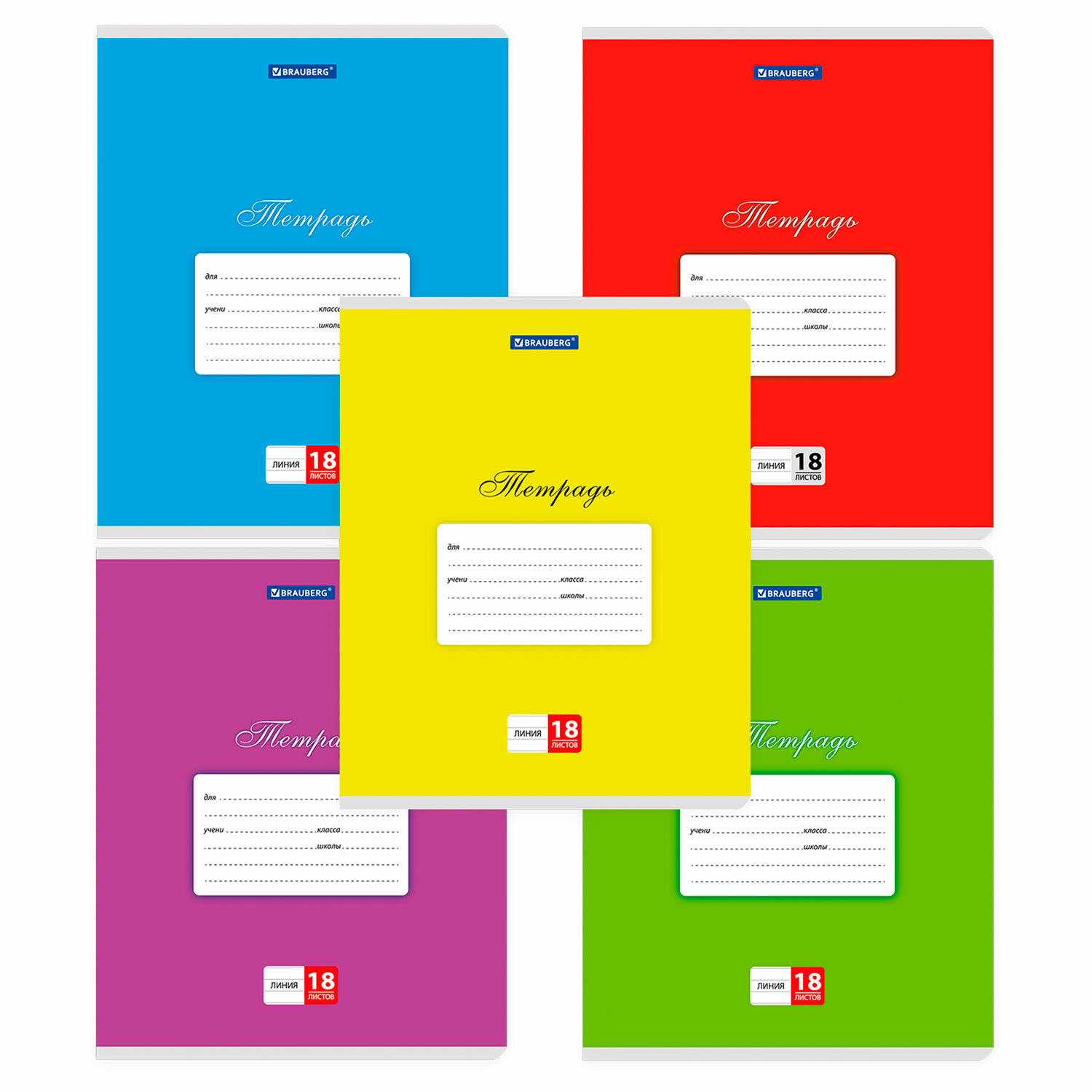 Тетради ДЭК 18 л., КОМПЛЕКТ 10 шт., BRAUBERG "КЛАССИКА", линия, обложка картон, АССОРТИ, 107086