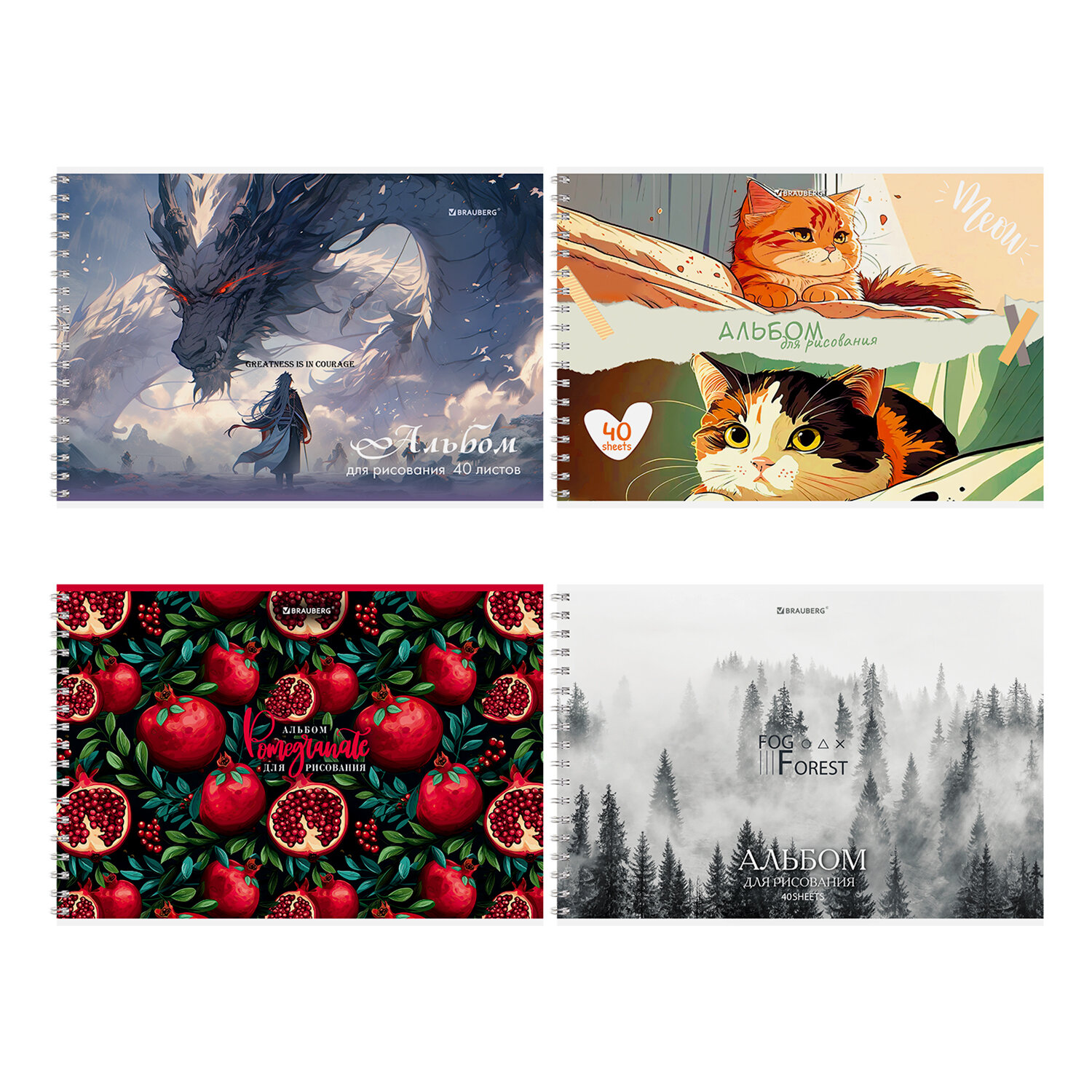 Альбом для рисования А4, 40 л., гребень, обложка картон, BRAUBERG, 195х285 мм, МИКС-1, 107118