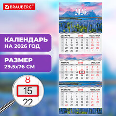 Календарь квартальный на 2026 г., 3 блока, 3 гребня, бегунок, мелованная бумага, BRAUBERG, «Горное озеро», 116801