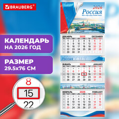 Календарь квартальный 2026 г., 3 блока, 3 гребня, бегунок, мелованная бумага, BRAUBERG EXTRA, «Госсимволика», 116810