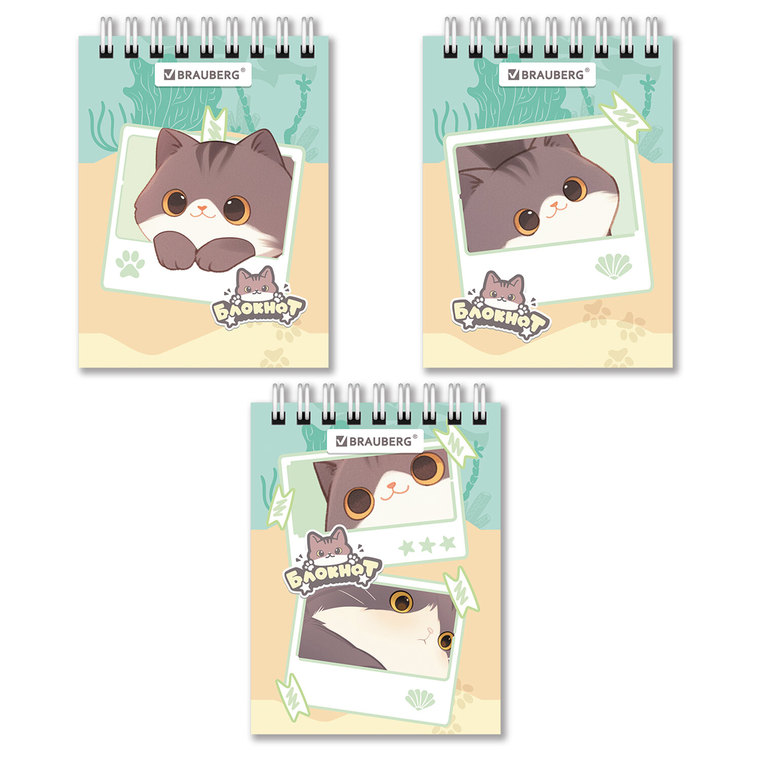 Блокнот МАЛЫЙ ФОРМАТ А7, 75х105 мм, 40 л., гребень, клетка, кросс-серия "МИЛЫЕ КОТЫ", BRAUBERG, 116988