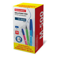 Ручка шариковая M-500 NEON, синяя, ВЫГОДНАЯ УПАКОВКА, КОМПЛЕКТ 50 штук, линия письма 0,35 мм, BRAUBERG, 880396