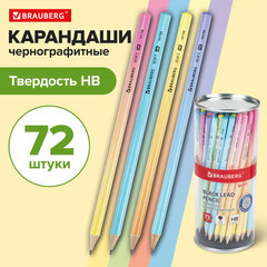 Карандаш чернографитный HB, BRAUBERG «SOFT» PASTEL, ВЫГОДНЫЙ КОМПЛЕКТ 72 штуки, корпус ассорти, 880759
