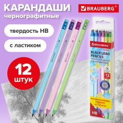 Набор карандашей чернографитных с ластиком BRAUBERG «PASTEL» 12 шт., HB, 181997