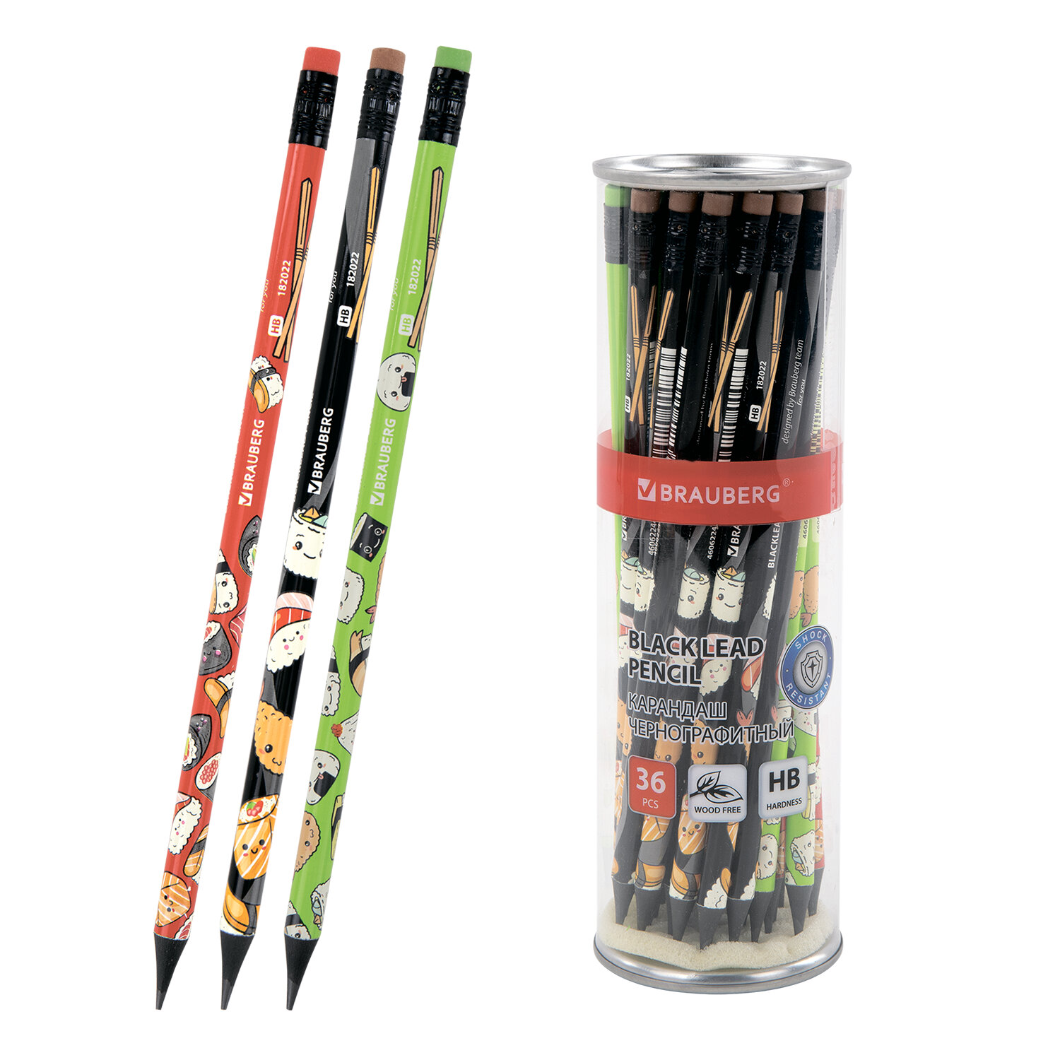 Карандаш чернографитный с принтом BRAUBERG "JAPAN FOOD", 1 шт., HB, с ластиком, корпус ассорти, 182022