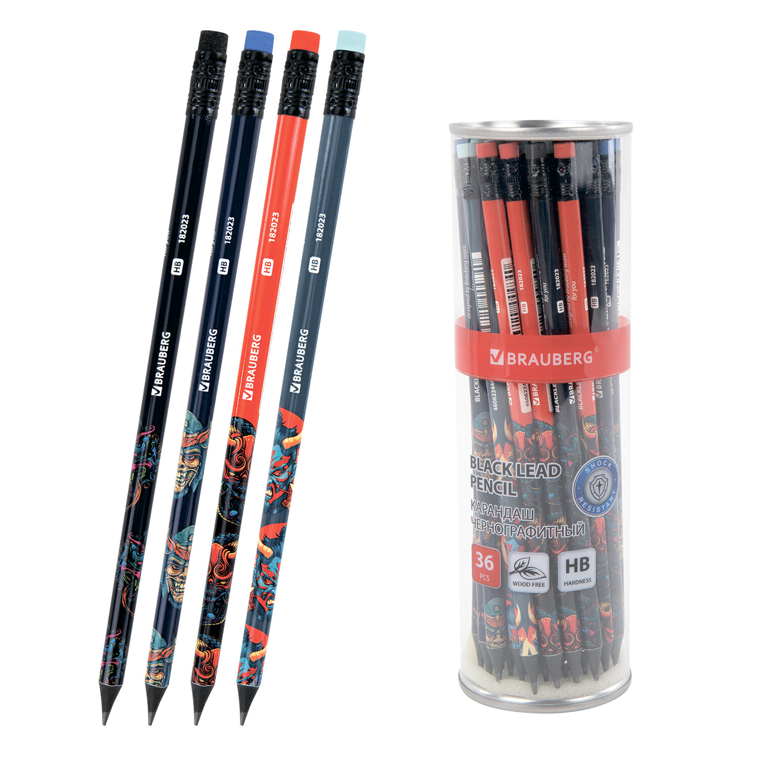 Карандаш чернографитный с принтом BRAUBERG "ONI", 1 шт., HB, с ластиком, корпус ассорти, 182023