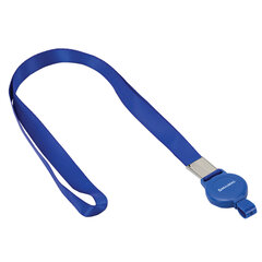 Держатель-рулетка для бейджей, 70 см, петелька, с синей лентой 45 см, синий, BRAUBERG, 235724