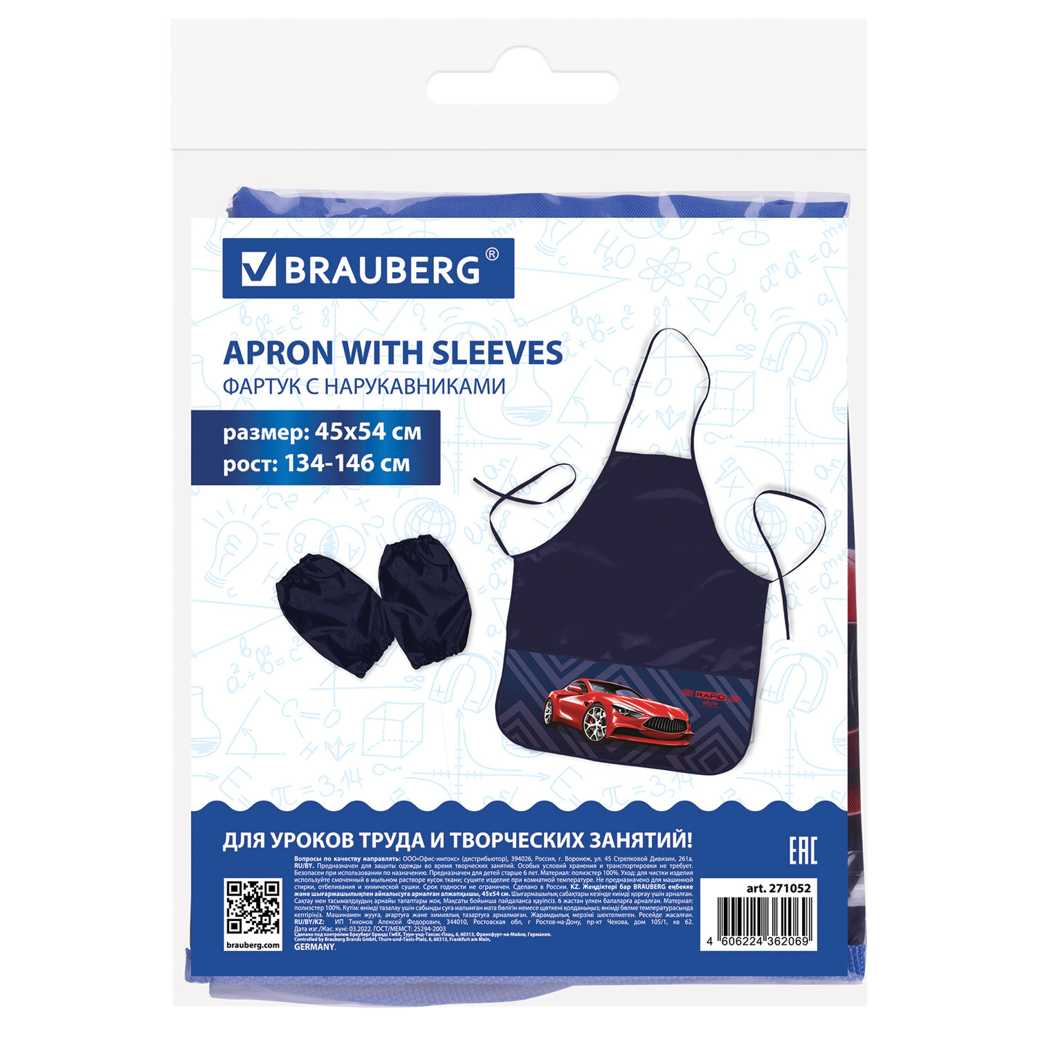 Фартук с нарукавниками для уроков труда BRAUBERG, 3 кармана, 46×54 см, «City car», 273639