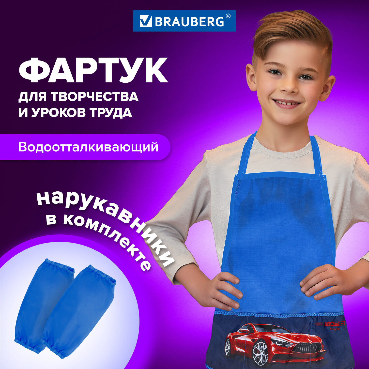 Фартук с нарукавниками BRAUBERG — незаменимая вещь для защиты одежды на уроках труда и занятиях творчеством. Фартук изготовлен из водоотталкивающего материала, предназначен для многоразового использования.