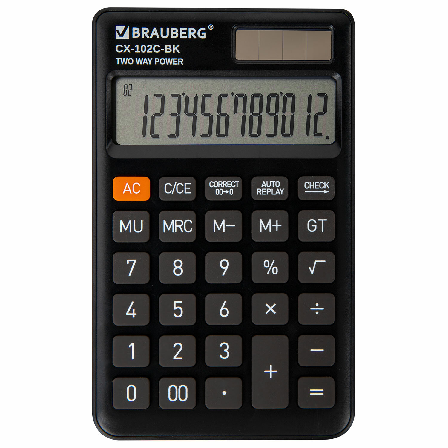 Калькулятор карманный BRAUBERG CX-102C-BK (76x126 мм), 12 разрядов, двойное питание, ЧЕРНЫЙ, 272647