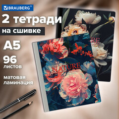 Тетради ДЭК А5 96 л. КОМПЛЕКТ 2 шт., BRAUBERG, на сшивке с корешком, клетка, «Flowers», 405311