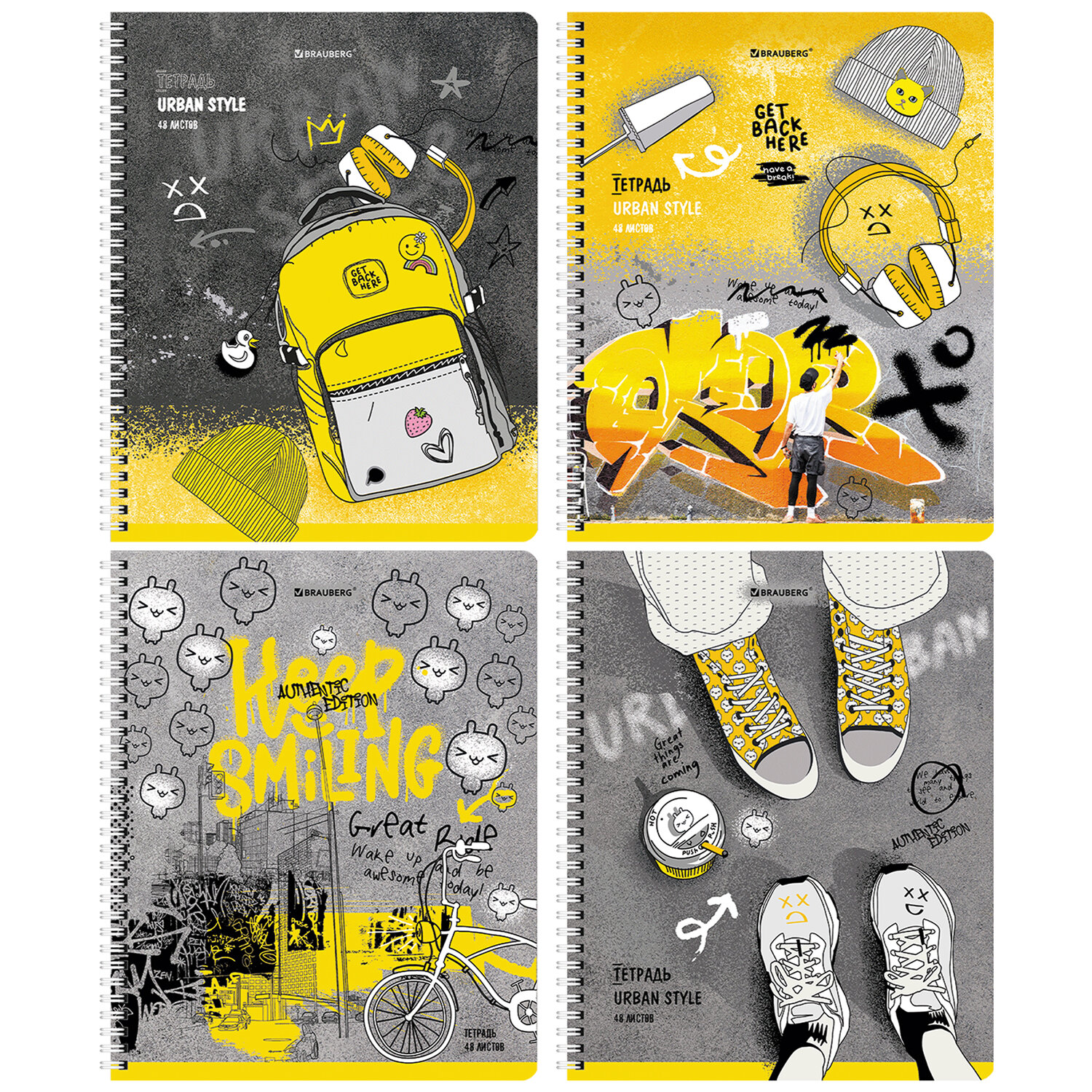 Тетрадь А5 48 л. BRAUBERG гребень, клетка, обложка картон, "Urban Style" (4 вида в спайке), 404338
