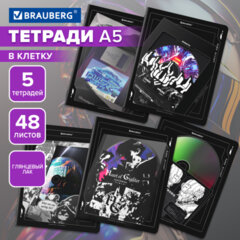 Тетради ДЭК А5 48 л. КОМПЛЕКТ 5 шт. BRAUBERG, скоба, клетка, глянцевый лак, «GAMES», 404933