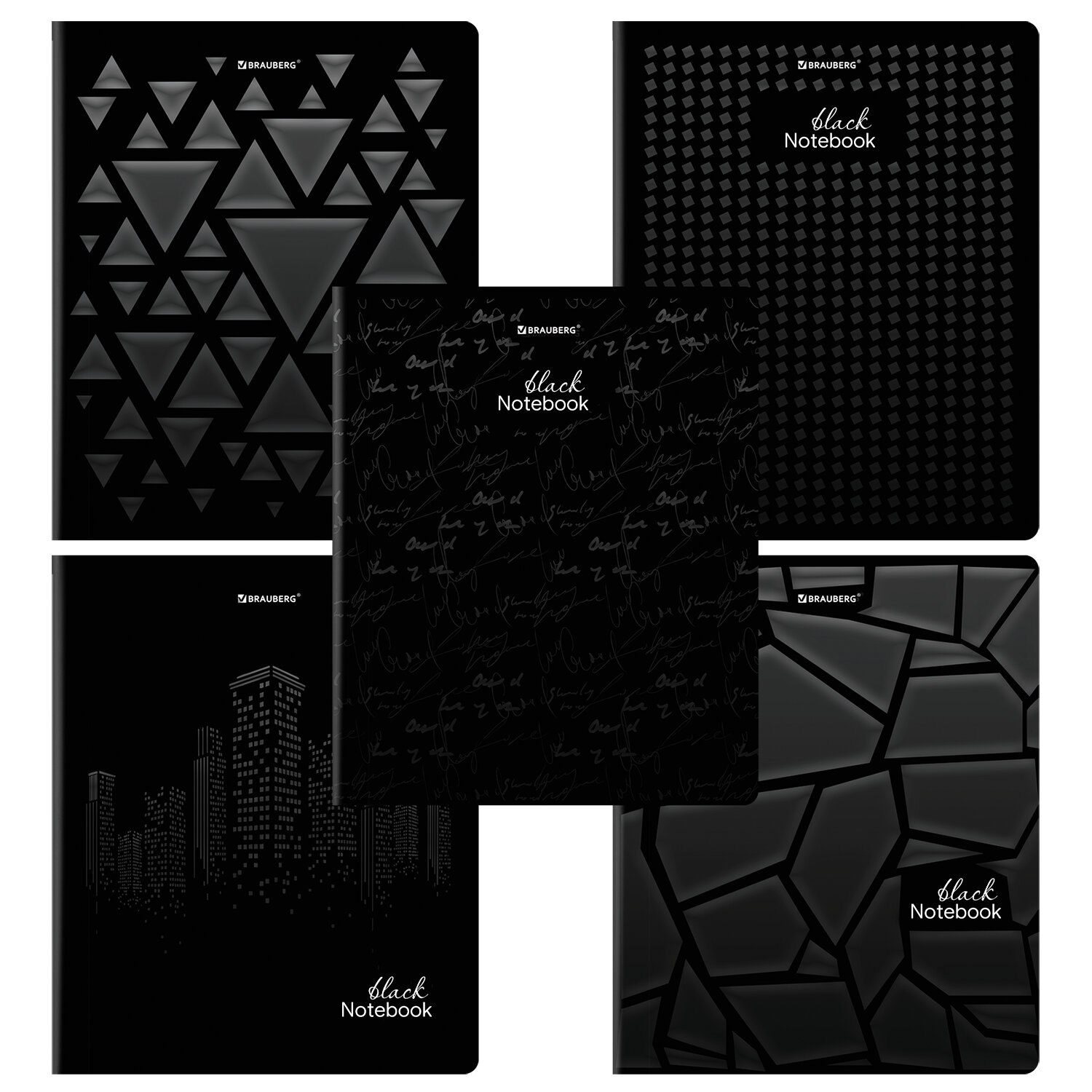 Тетрадь А5, 48 л., BRAUBERG, скоба, клетка, матовая ламинация, выборочный лак, "Black" (микс в спайке), 404375