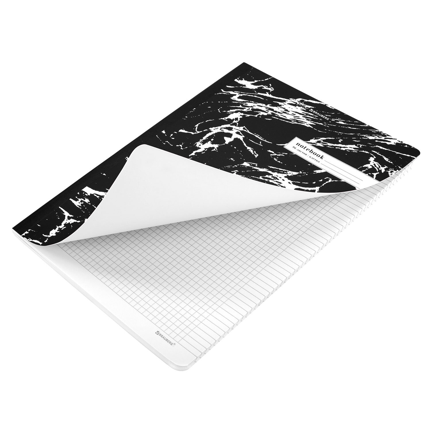 Тетрадь обложка пластик, А4 80 л., гребень мягкий, вырубка для ручки, клетка, BRAUBERG, черный, 405371