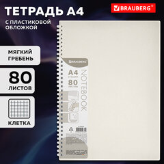 Тетрадь обложка пластик, А4 80 л., гребень мягкий (силиконовый), клетка, BRAUBERG, бежевая, 405354