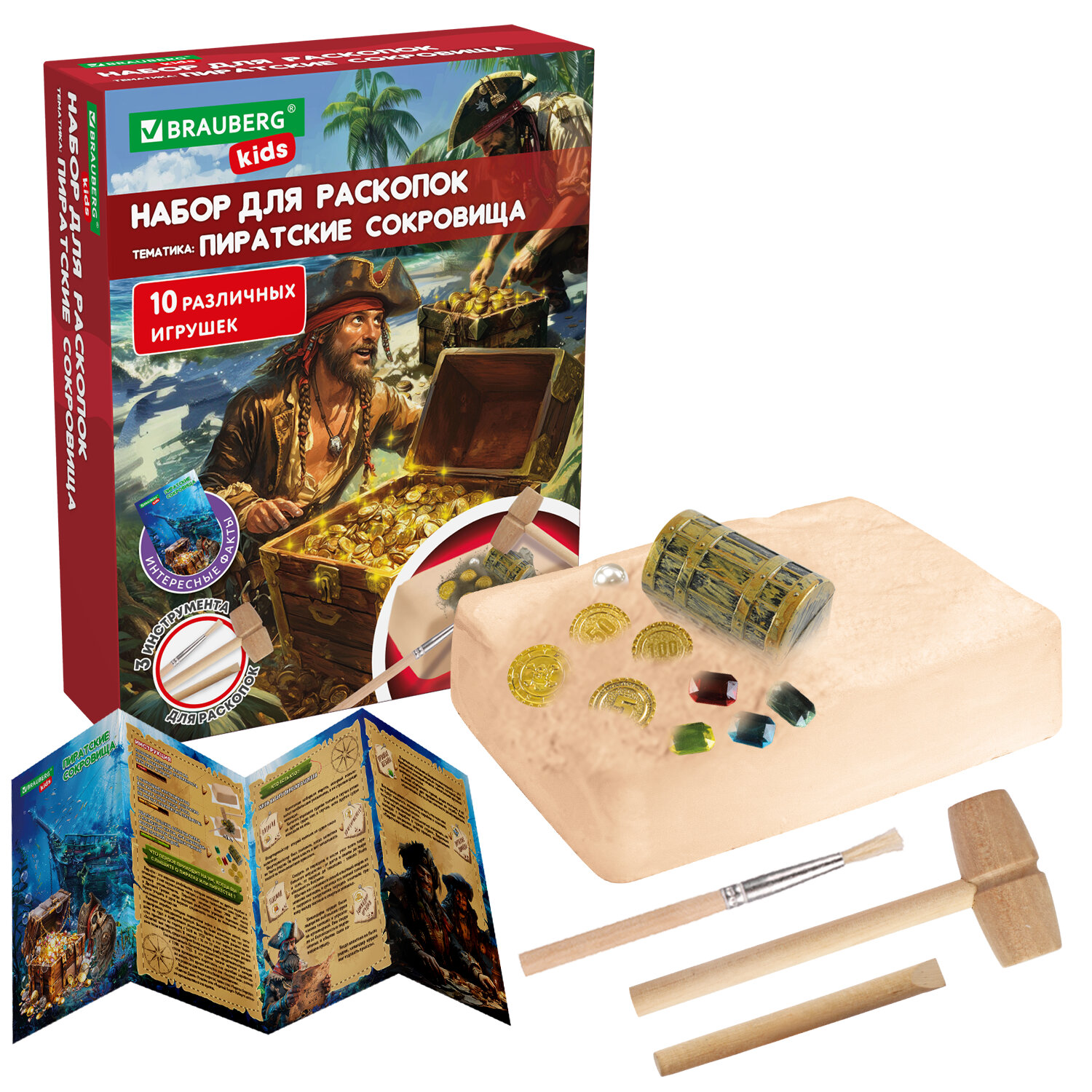 Откройте тайны семи морей! Станьте настоящим искателем приключений и найдите спрятанные пиратские богатства вместе с набором для раскопок «Пиратский клад» от BRAUBERG KIDS!