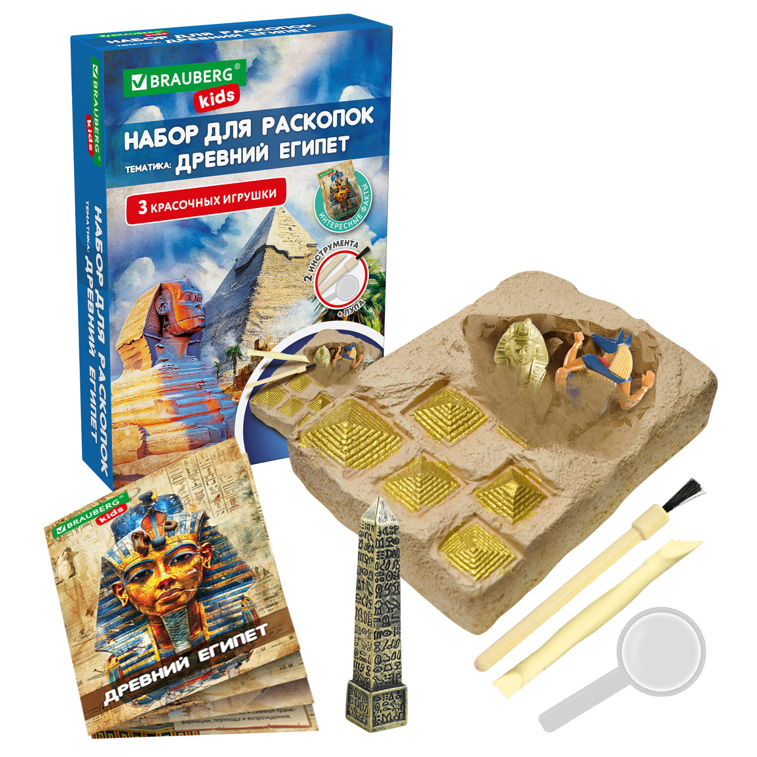 Отправьтесь на поиски затерянных сокровищ фараонов, не выходя из дома! Погрузите вашего ребенка в загадочный мир пирамид, могущественных фараонов и древних богов вместе с набором для раскопок «Древний Египет» от BRAUBERG KIDS!