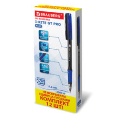 Ручка шариковая BRAUBERG «i-Rite GT PRO», синяя, ВЫГОДНАЯ УПАКОВКА, КОМПЛЕКТ 12 штук, 0,2 мм, 880176