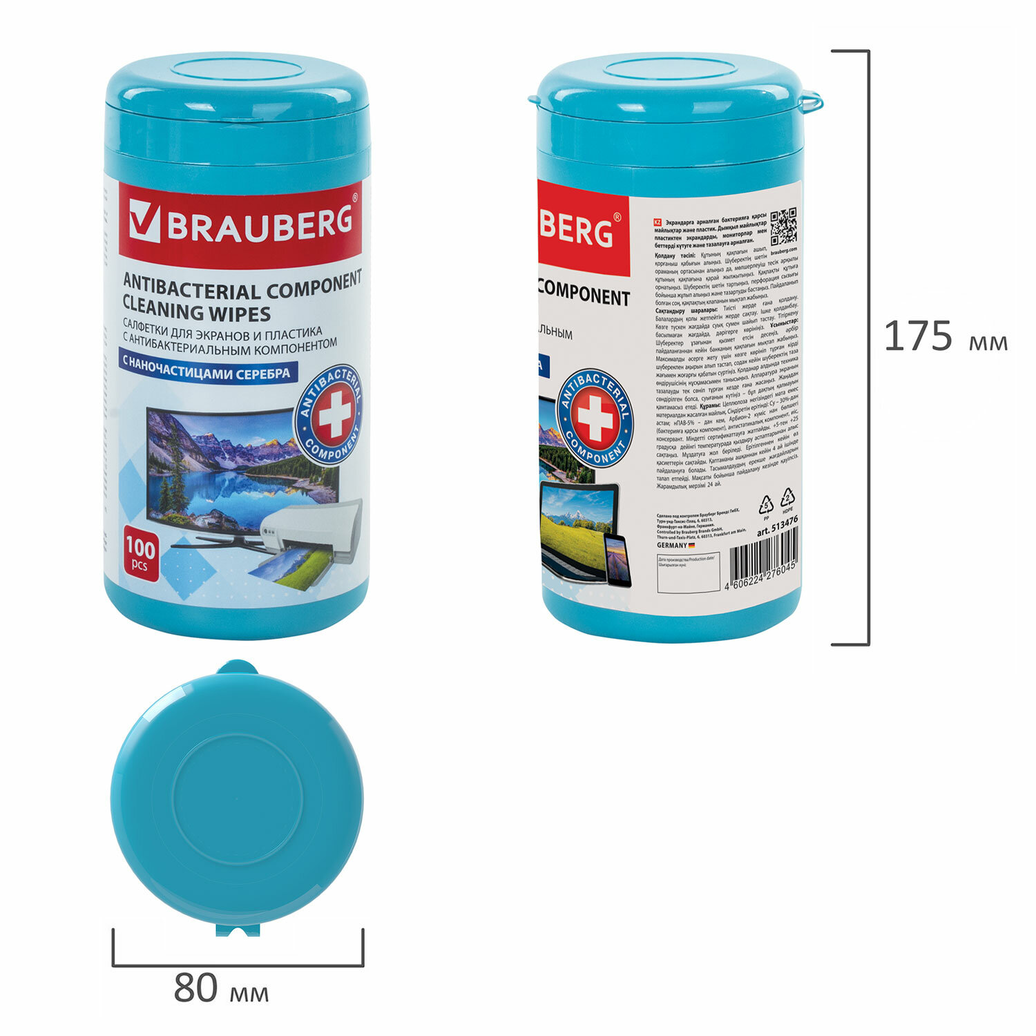 Салфетки АНТИБАКТЕРИАЛЬНЫЕ ДЛЯ БЫТОВОЙ И ОРГТЕХНИКИ, ПЛОТНЫЕ, BRAUBERG, 100 шт., 513477
