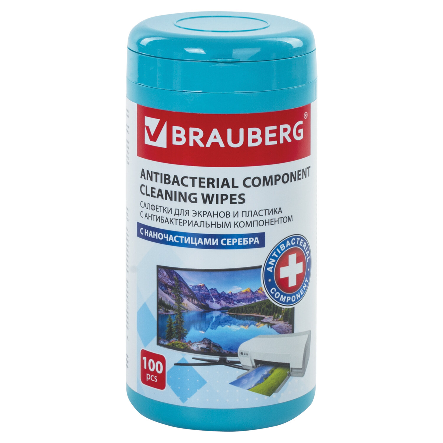 Салфетки АНТИБАКТЕРИАЛЬНЫЕ ДЛЯ МОНИТОРОВ, ОПТИКИ И ПЛАСТИКА, ПЛОТНЫЕ, BRAUBERG, 100 шт., ВБ