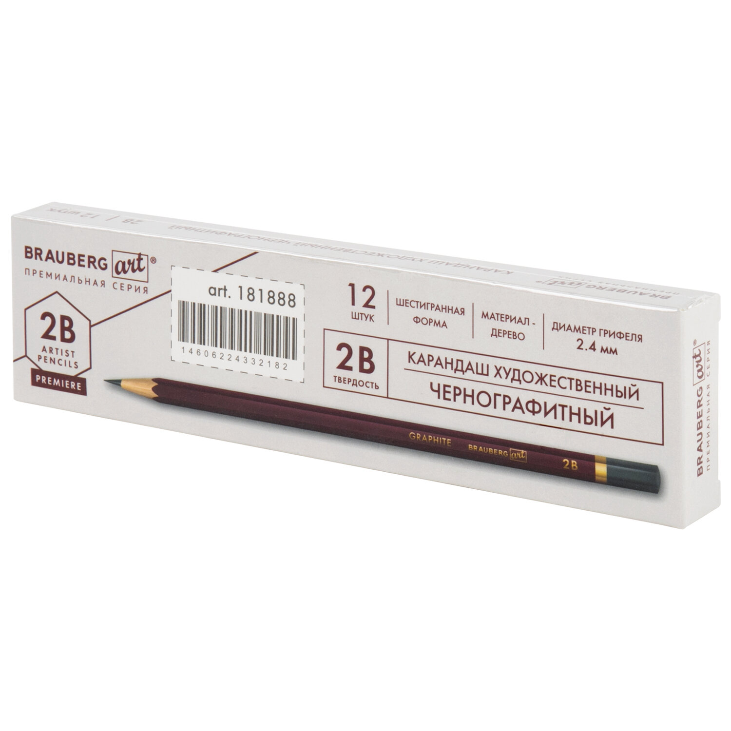 Карандаш чернографитный художественный 2B, 1 шт., BRAUBERG ART «PREMIERE», ВЫСШЕЕ КАЧЕСТВО, 181888