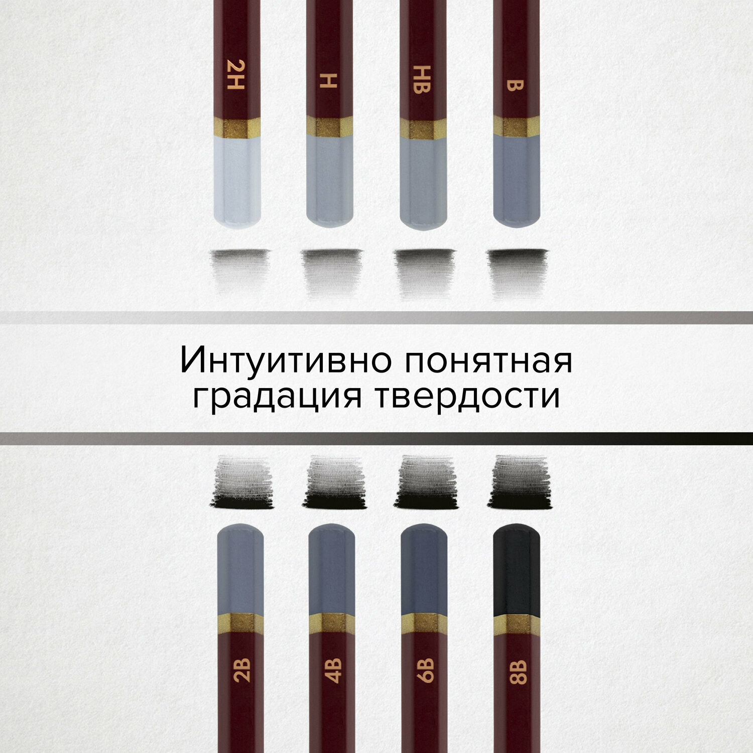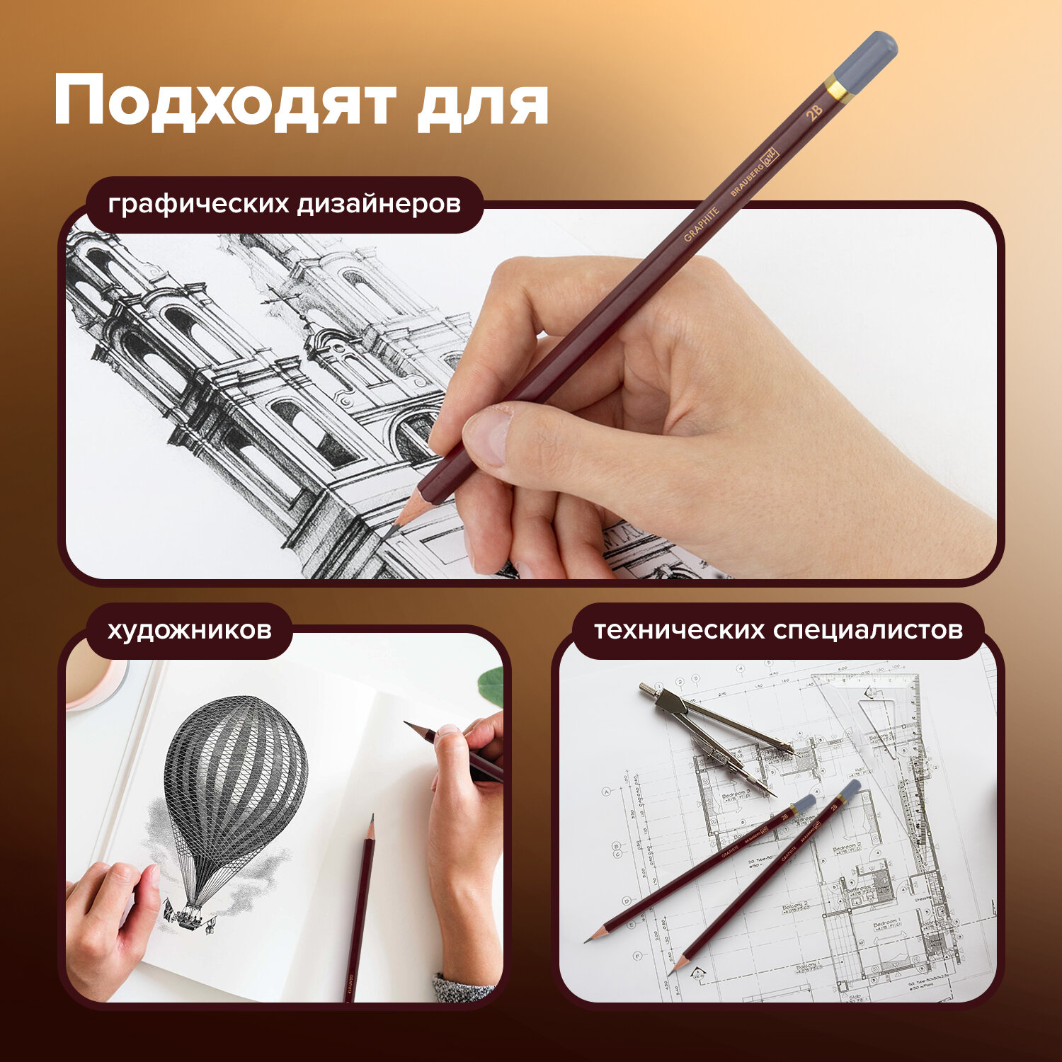 Карандаш чернографитный художественный BRAUBERG ART «PREMIERE» универсален в рисовании и обладает огромными возможностями в передаче света и тени. Подходит для создания легкого наброска, быстрого рисунка или полноценной картины.
