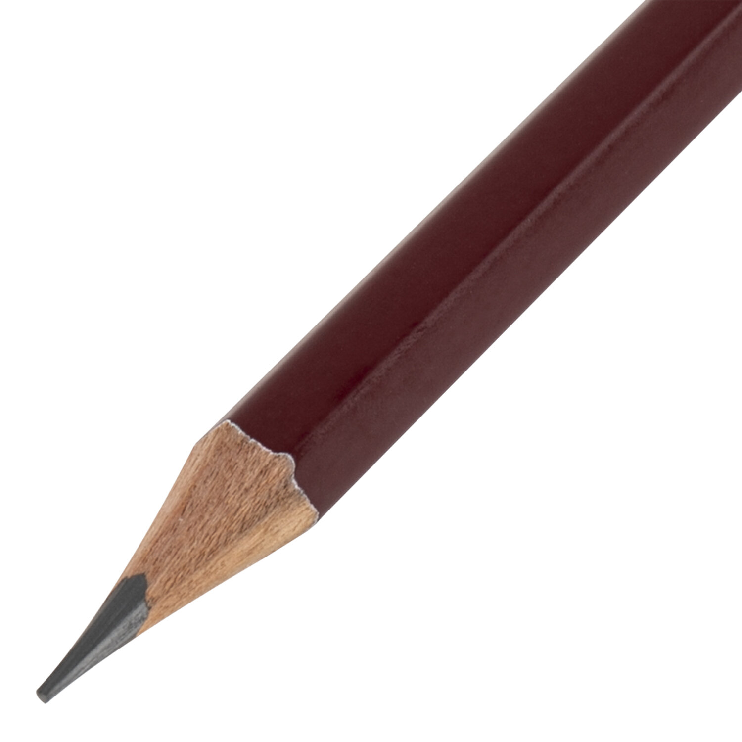 Карандаш легко затачивается, максимально устойчив к повреждениям. Изготовлен из дерева высокого качества. Имеет шестигранное сечение. Карандаш длиной 176 мм обладает степенью твердости 2B. Цвет корпуса — бордовый. Диаметр грифеля — 2,4 мм. Поставляется заточенным.