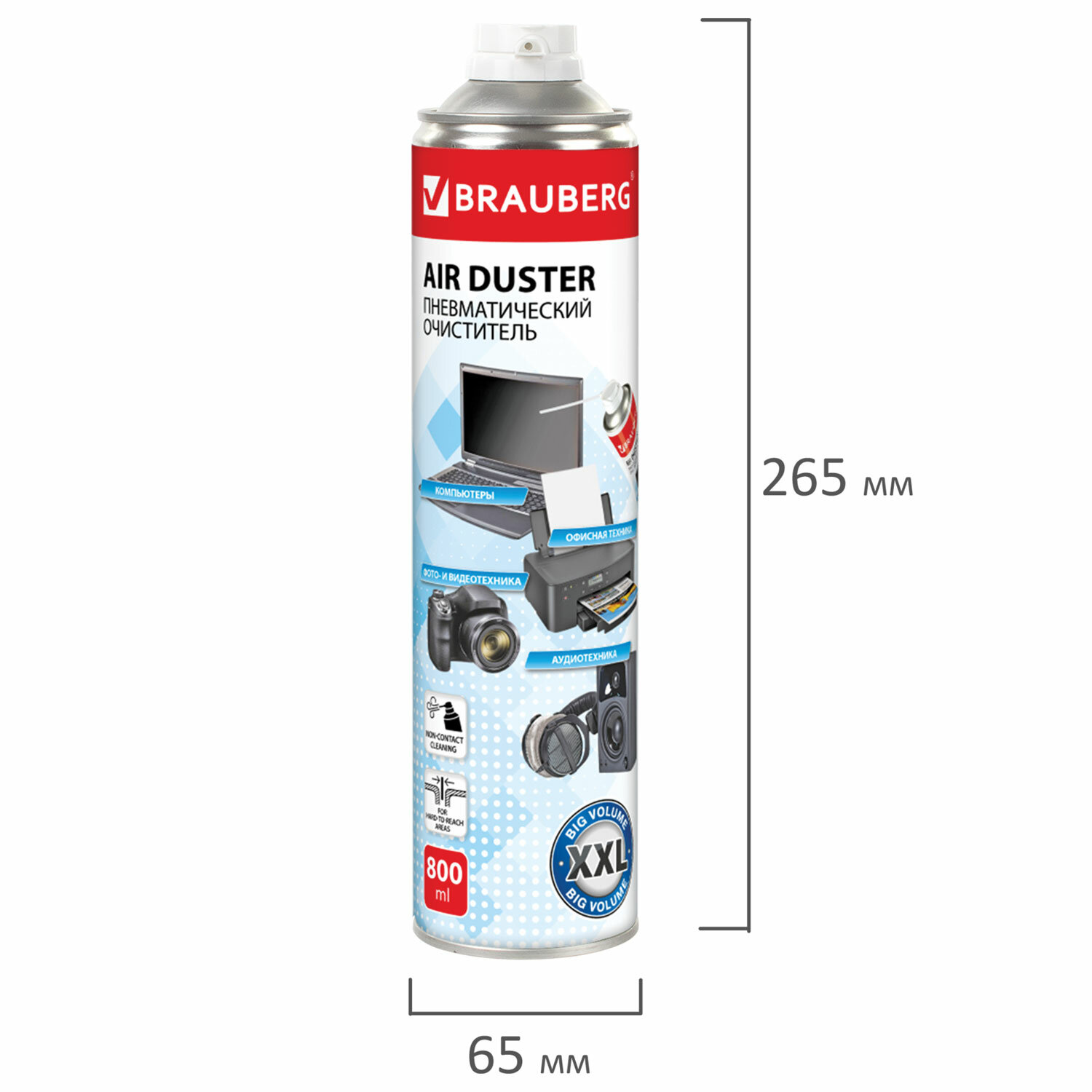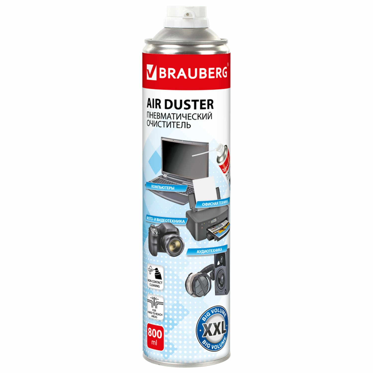 Баллон со сжатым воздухом BRAUBERG ДЛЯ ОЧИСТКИ ТЕХНИКИ, 800 мл, 513691