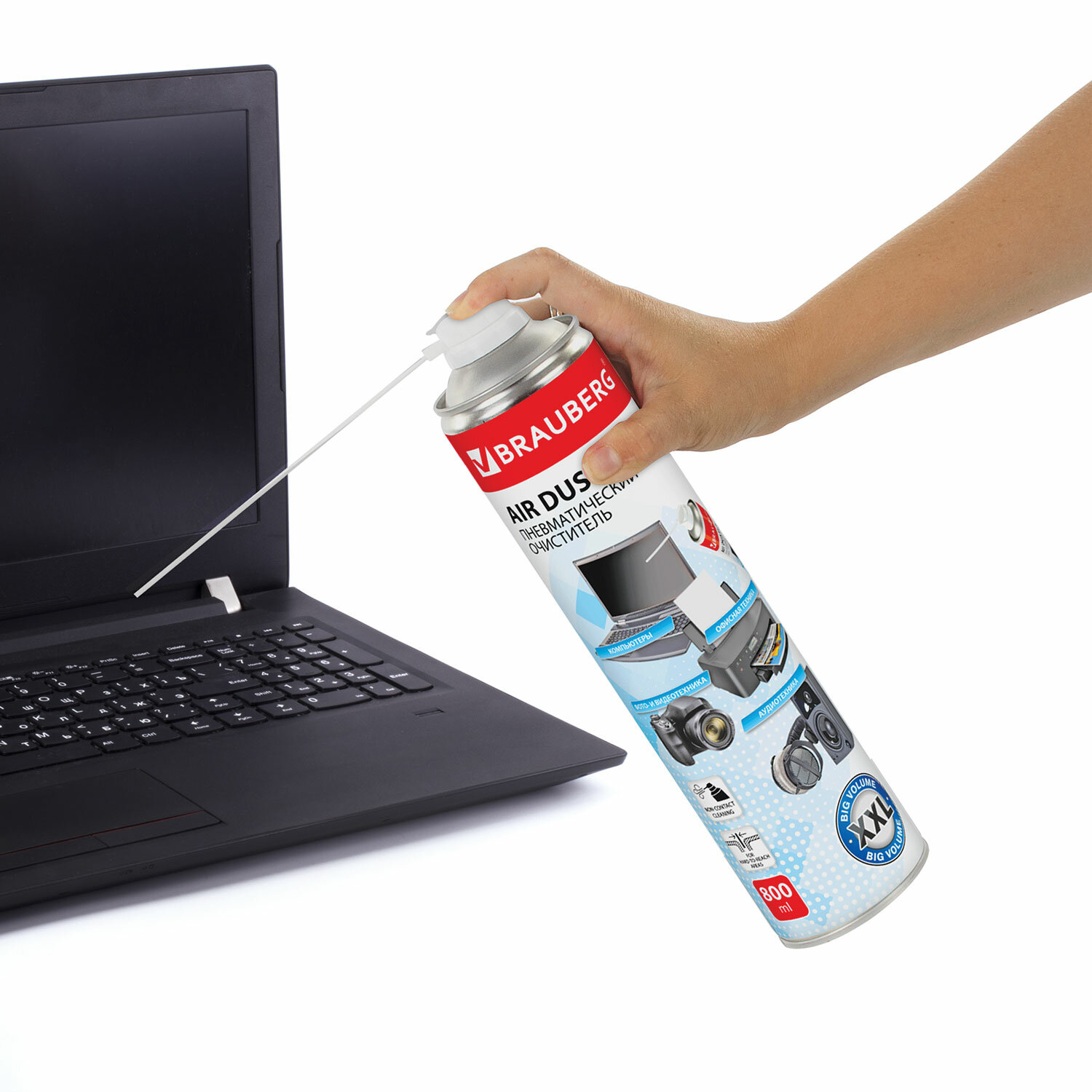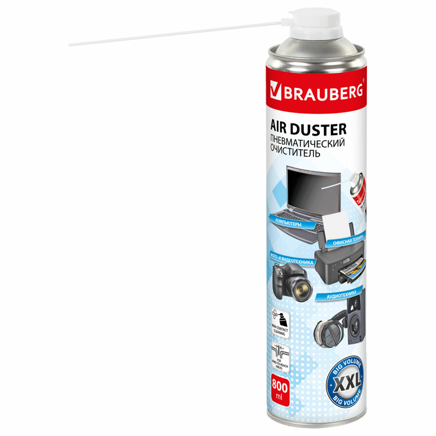 Баллон со сжатым воздухом BRAUBERG предназначен для бесконтактного удаления пыли и мелкого мусора из труднодоступных мест и внутреннего пространства компьютерной техники, аудио-, видео- и фотоаппаратуры, офисной и бытовой техники.