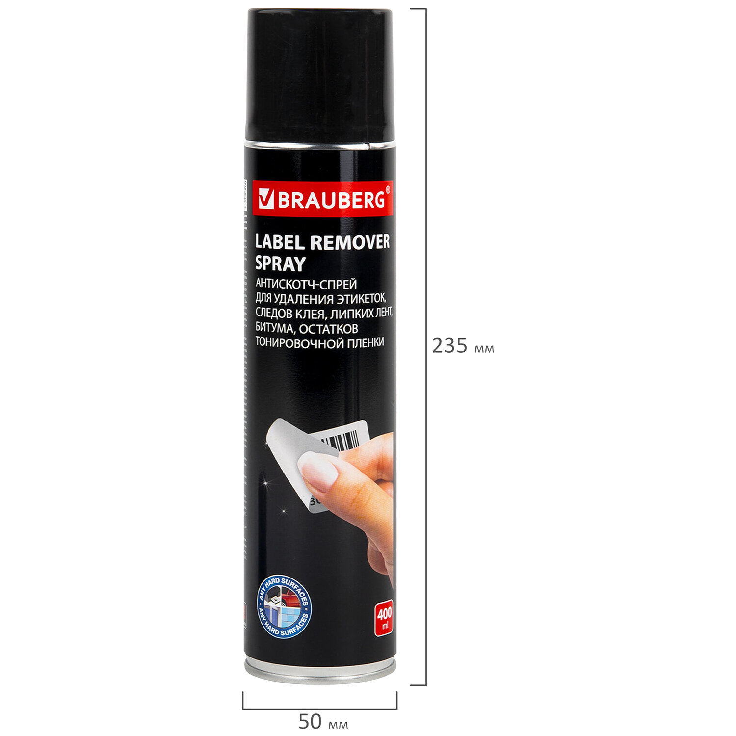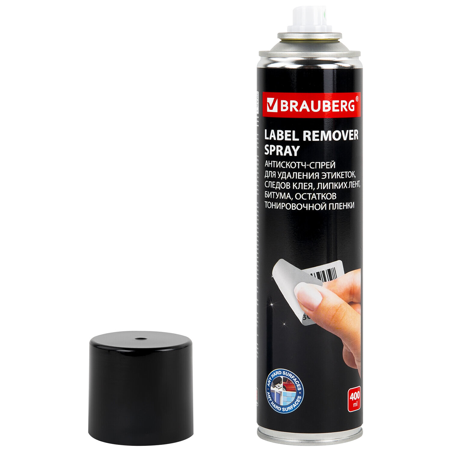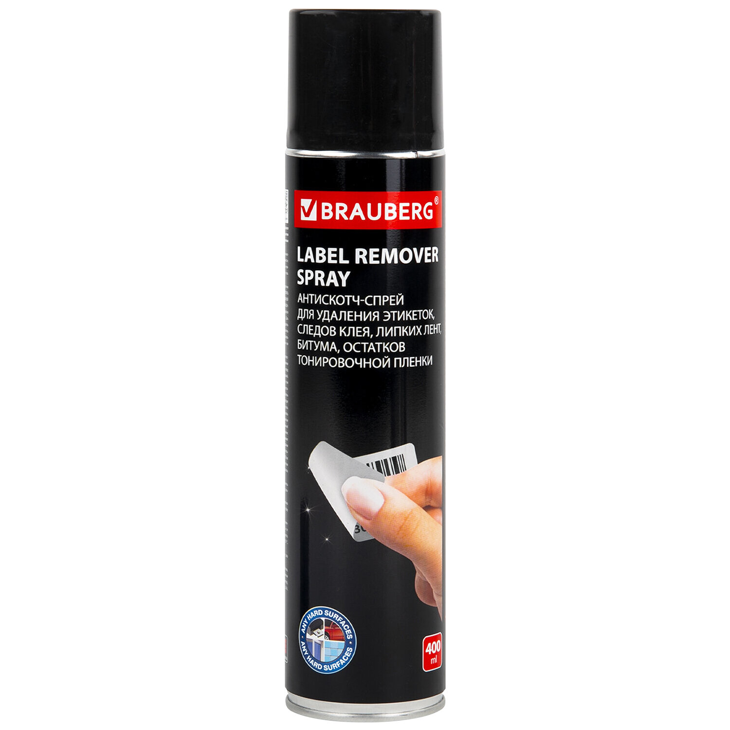Средство BRAUBERG предназначено для быстрого и эффективного удаления остатков клея, клейкой ленты, тонировочной пленки, битума, информационных наклеек и рекламы.
