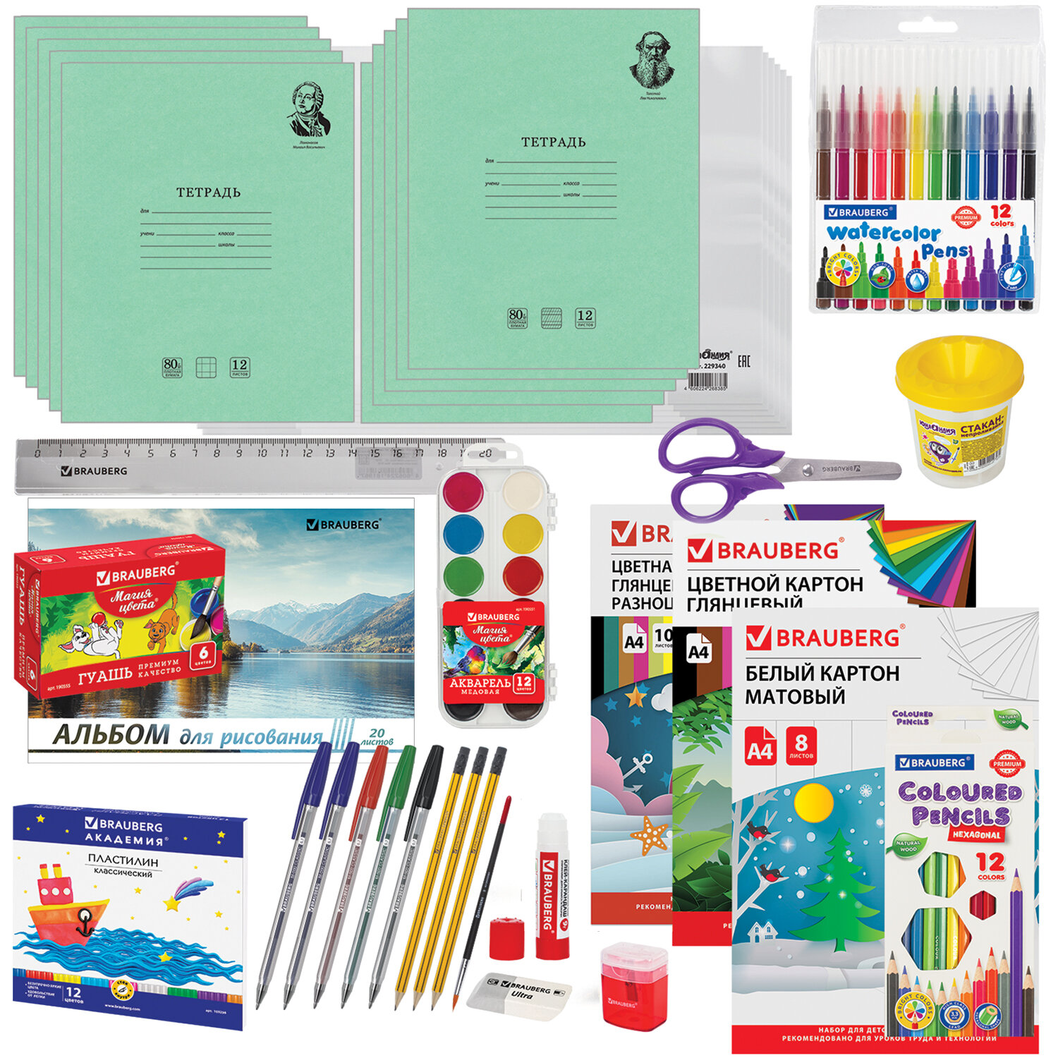Набор канцелярских принадлежностей BRAUBERG «НАБОР ПЕРВОКЛАССНИКА» для выпускников детского сада и первоклассников в красочной упаковке. Скомплектован на основе рекомендаций учителей начальных классов. В комплект входят 4 набора.