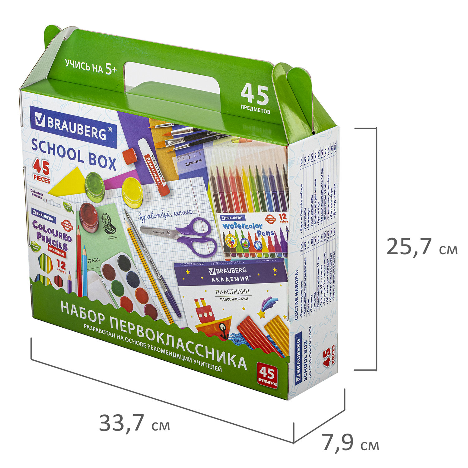 Состав набора разработан на основе рекомендаций учителей и пожеланий родителей таким образом, чтобы обеспечить юного ученика всем необходимым.