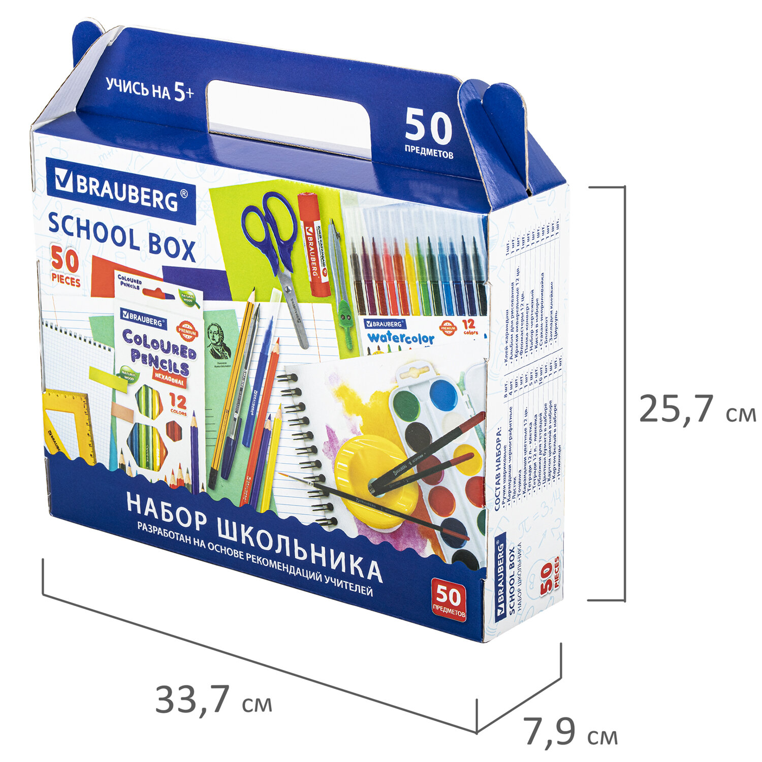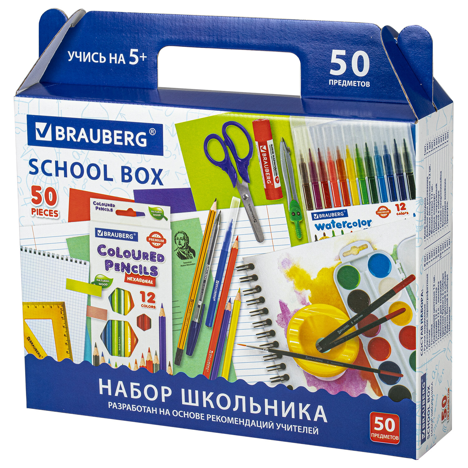 Набор школьных принадлежностей в подарочной коробке BRAUBERG "ШКОЛЬНЫЙ УНИВЕРСАЛЬНЫЙ", 50 предметов, КОМПЛЕКТ 4 шт., 880805