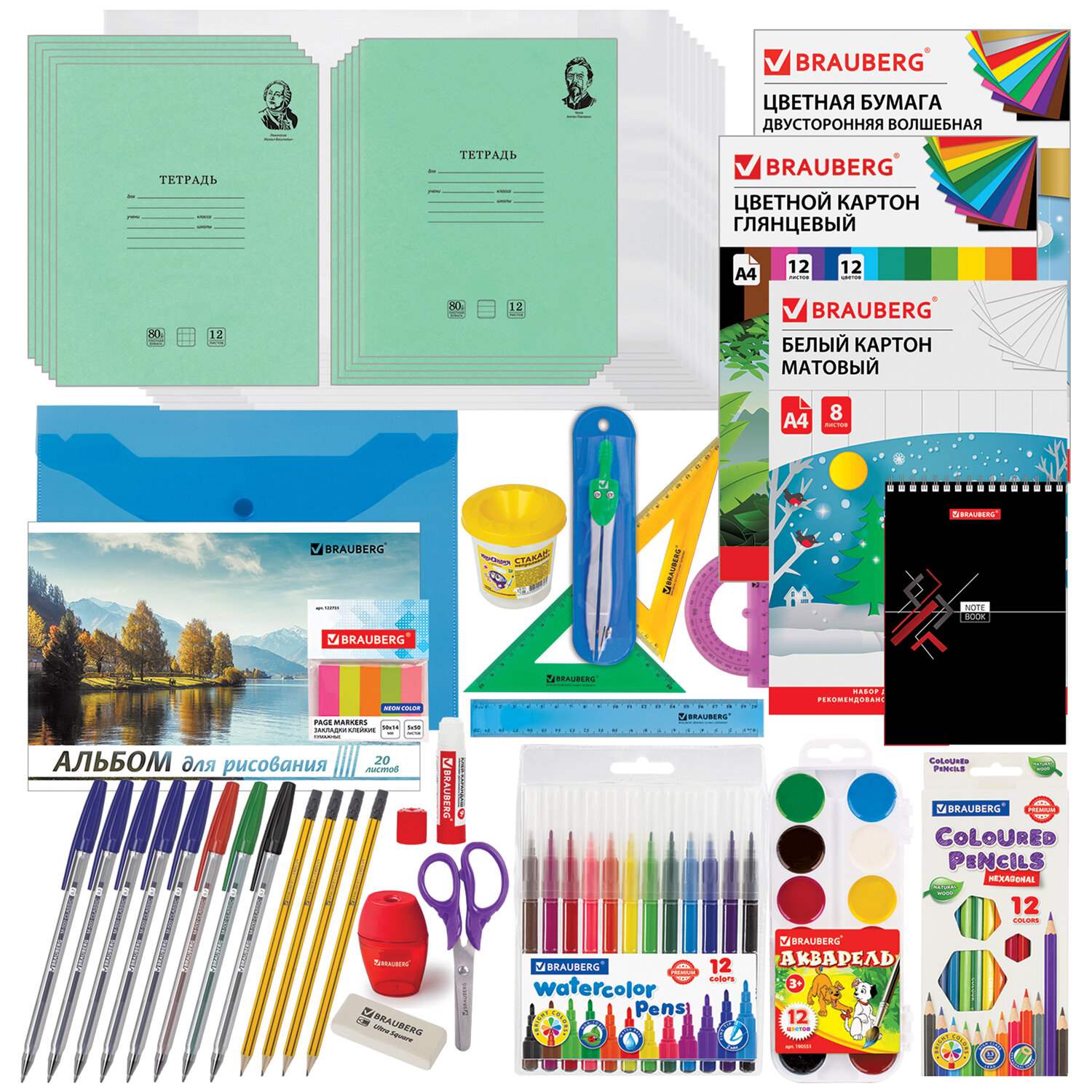 Набор канцелярских принадлежностей BRAUBERG «ШКОЛЬНЫЙ УНИВЕРСАЛЬНЫЙ» для выпускников детского сада и учеников начальной школы в красочной упаковке. Скомплектован на основе рекомендаций учителей. В комплект входят 4 набора.