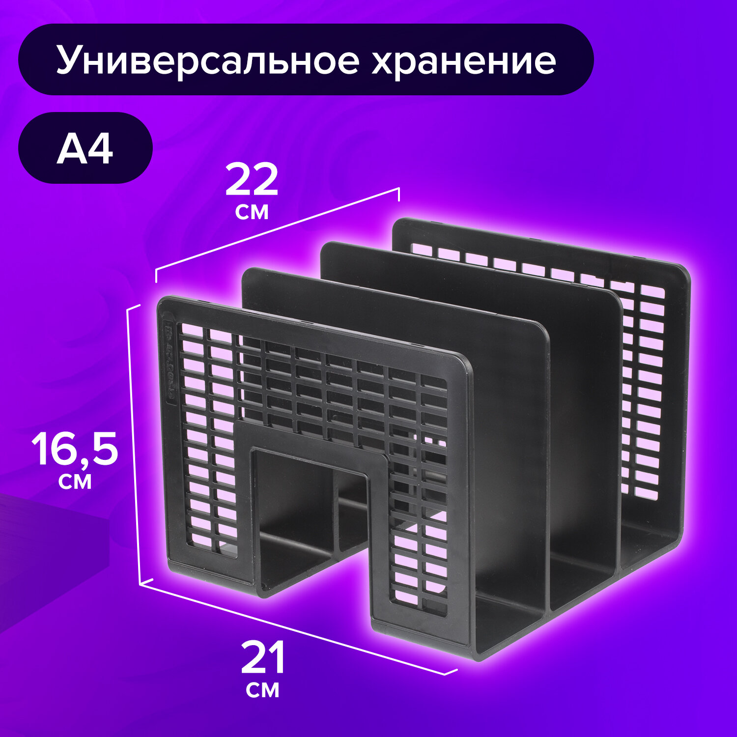 Лоток-сортер для бумаг BRAUBERG «Office-Expert», 3 отделения, 207х212х168 мм, сетчатый черный, 238021