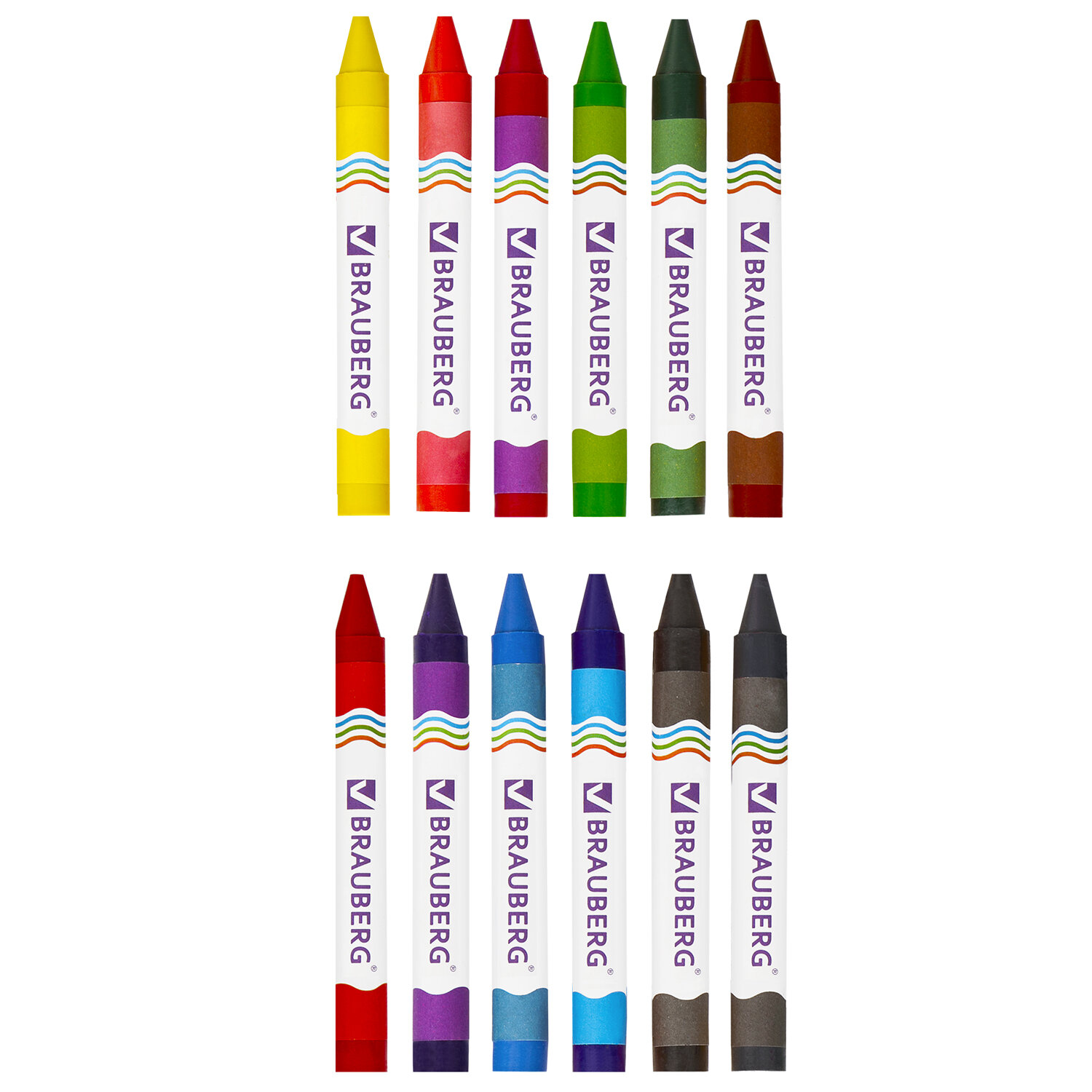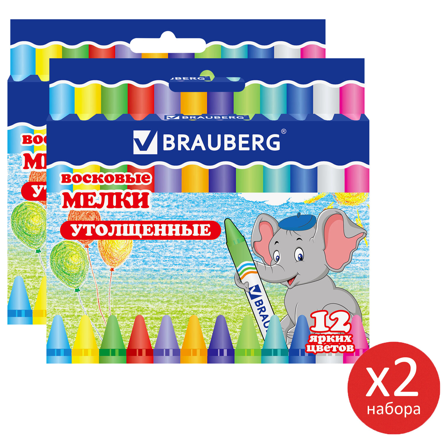 Восковые мелки утолщенные ВЫГОДНАЯ УПАКОВКА, КОМПЛЕКТ из 2 шт. по 12 цветов, BRAUBERG, 881064