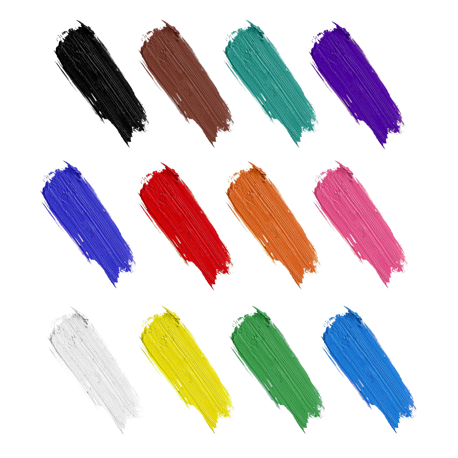 В наборе 2 упаковки по12 ярких и насыщенных цветов: белый, красный, черный, синий, желтый, зеленый, коричневый, оранжевый, фиолетовый, светло-зеленый, голубой, розовый.