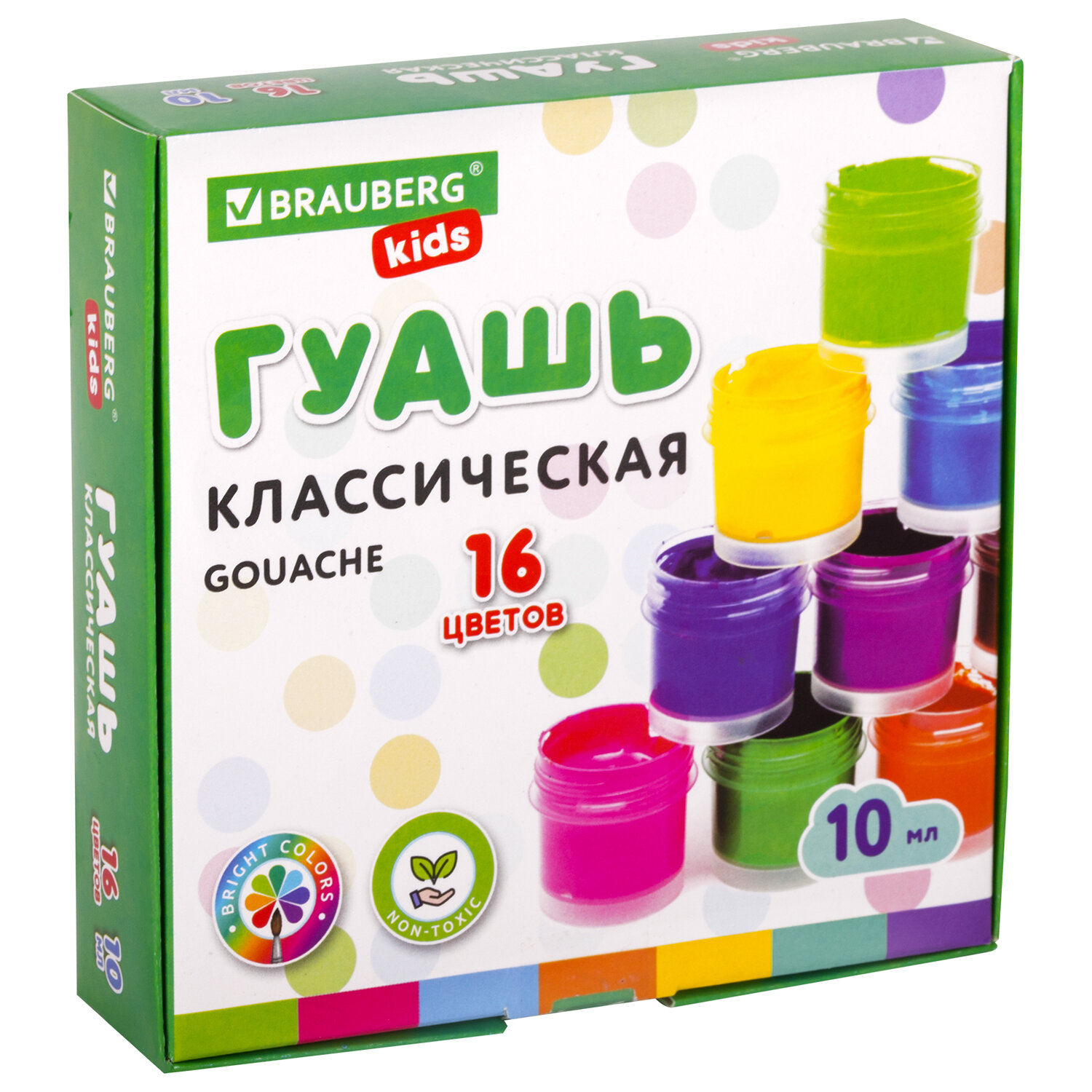 Гуашь BRAUBERG KIDS поможет создать юным художникам первые шедевры. Хорошо наносится на бумагу, картон, дерево, стекло, керамику.