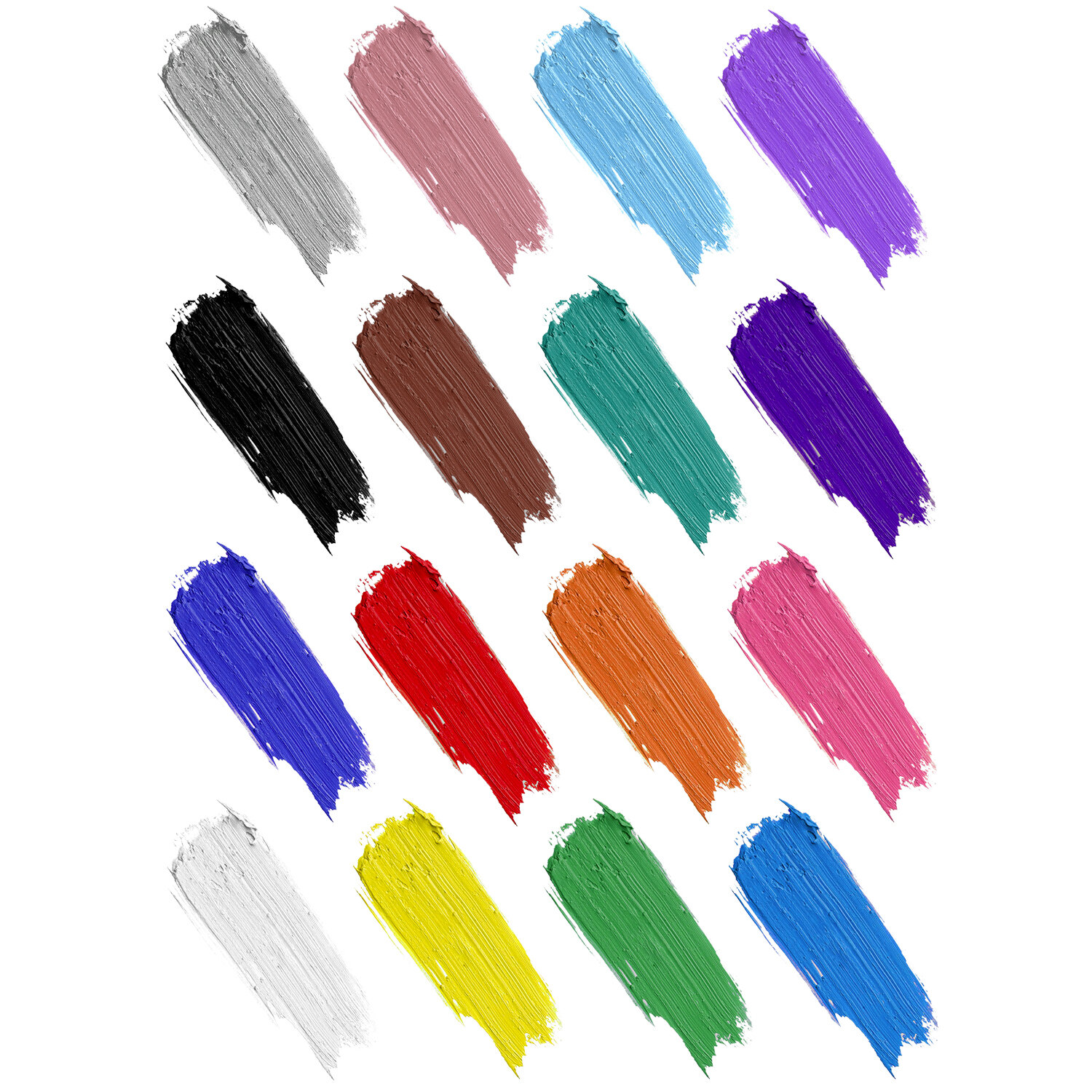 В наборе 2 упаковки по 16 ярких и насыщенных цветов: белый, красный, черный, синий, желтый, зеленый, коричневый, оранжевый, фиолетовый, светло-зеленый, голубой, розовый, красно-коричневый, охра, кармин, темно-зеленый.