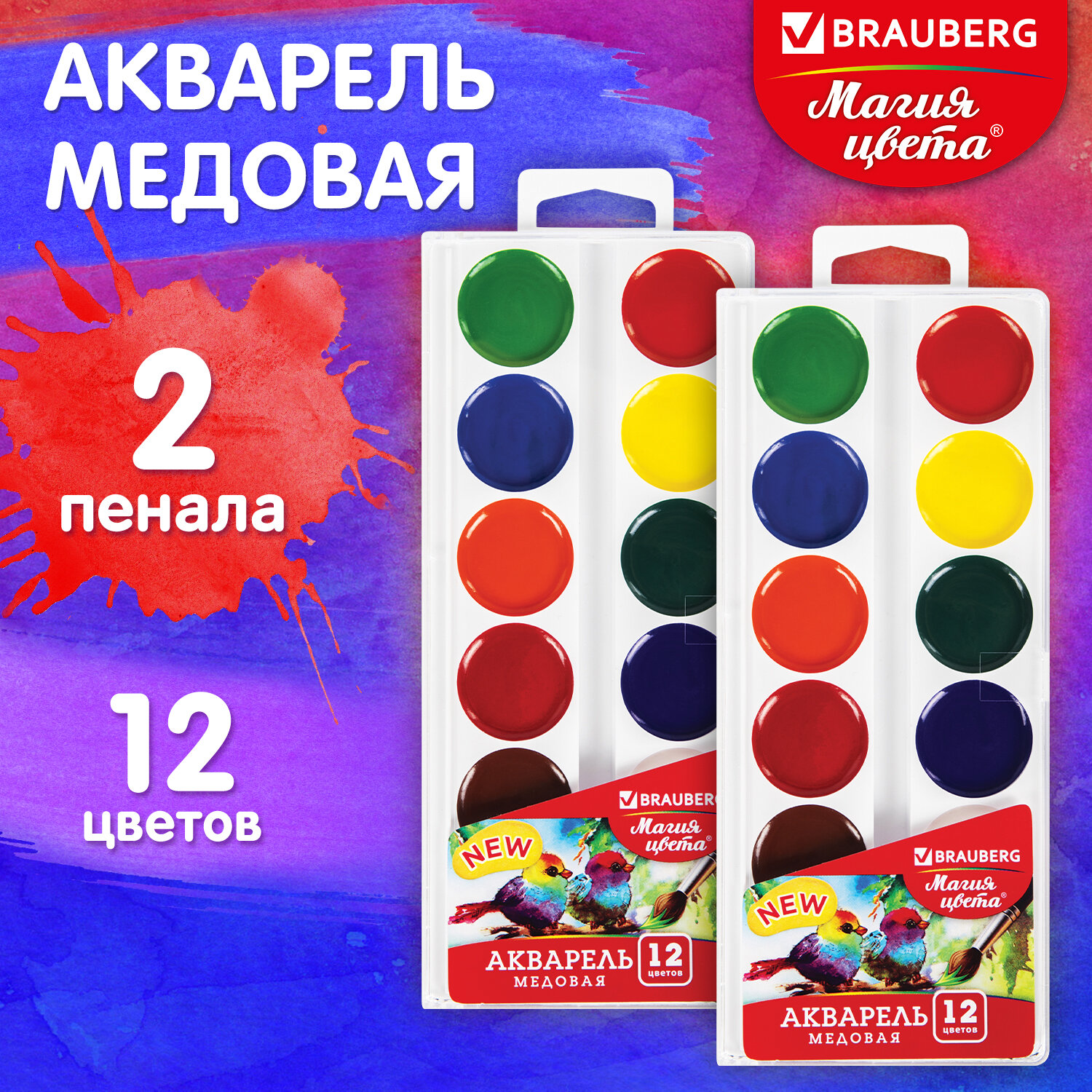 Краски акварельные BRAUBERG "МАГИЯ ЦВЕТА NEW", ВЫГОДНАЯ УПАКОВКА, 2 штуки по 12 цветов, медовая, 881080