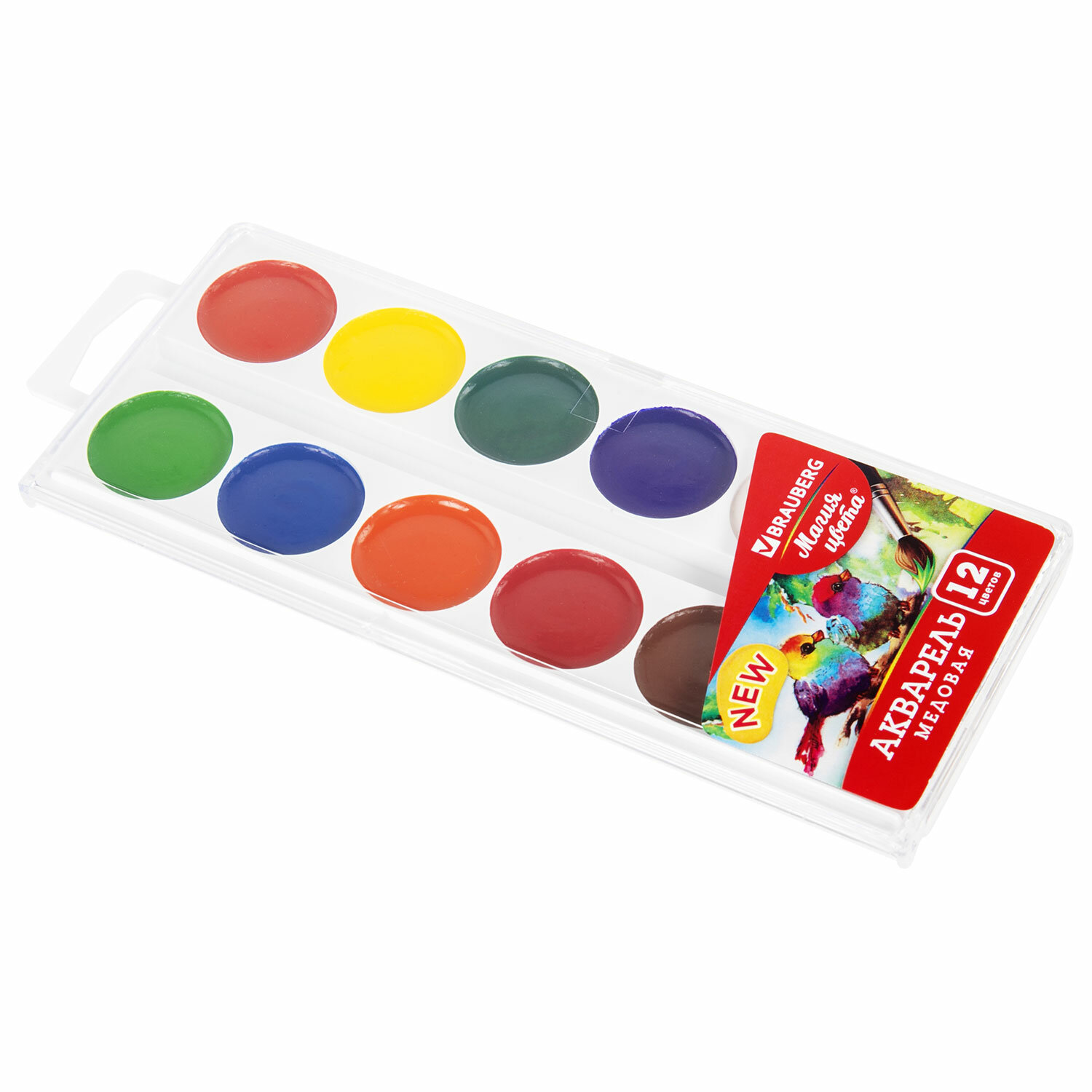 Краски акварельные BRAUBERG «МАГИЯ ЦВЕТА NEW», медовые, 12 цветов, круглые кюветы, 881079