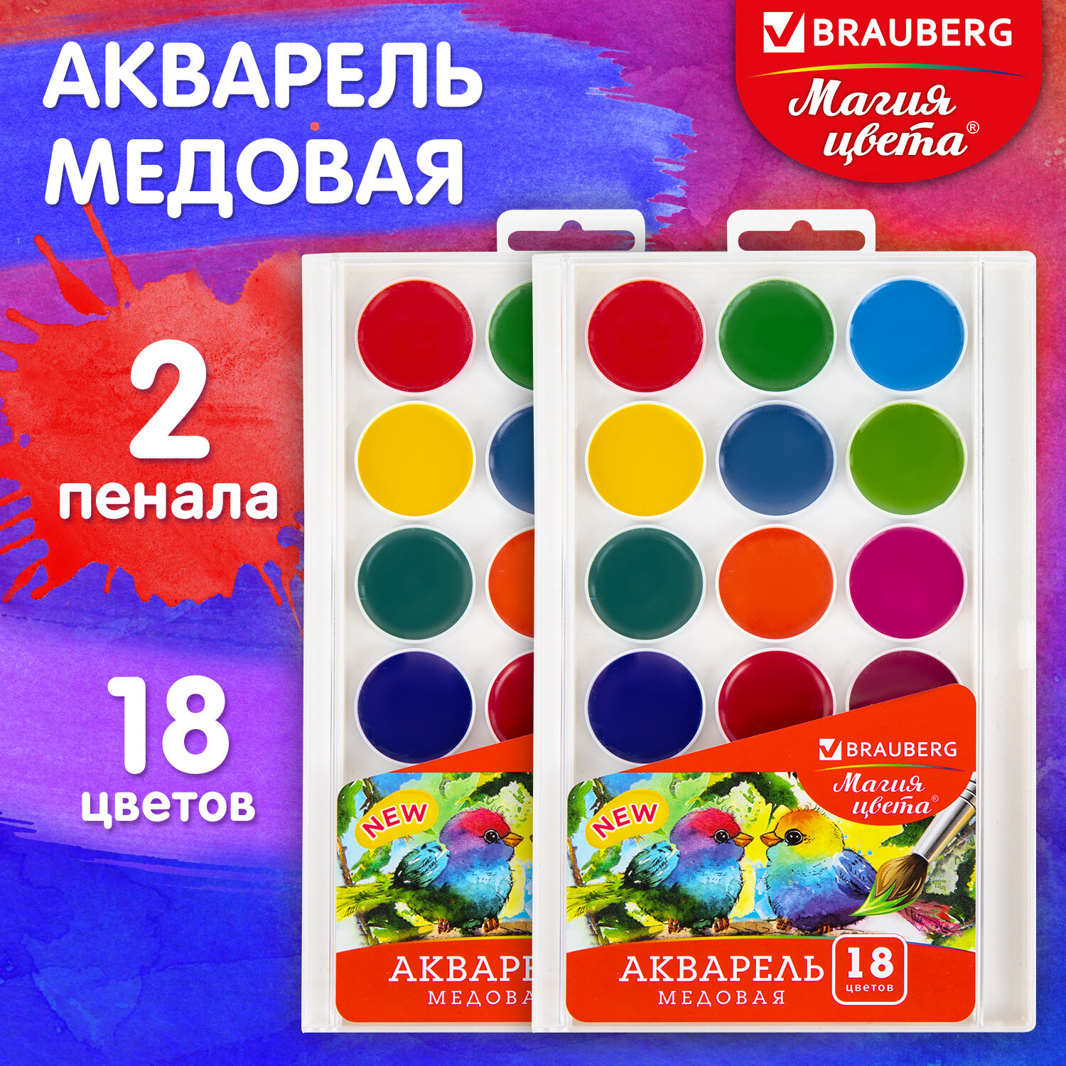 Краски акварельные BRAUBERG "МАГИЯ ЦВЕТА NEW", ВЫГОДНАЯ УПАКОВКА, 2 штуки по 18 цветов, медовая, 881083